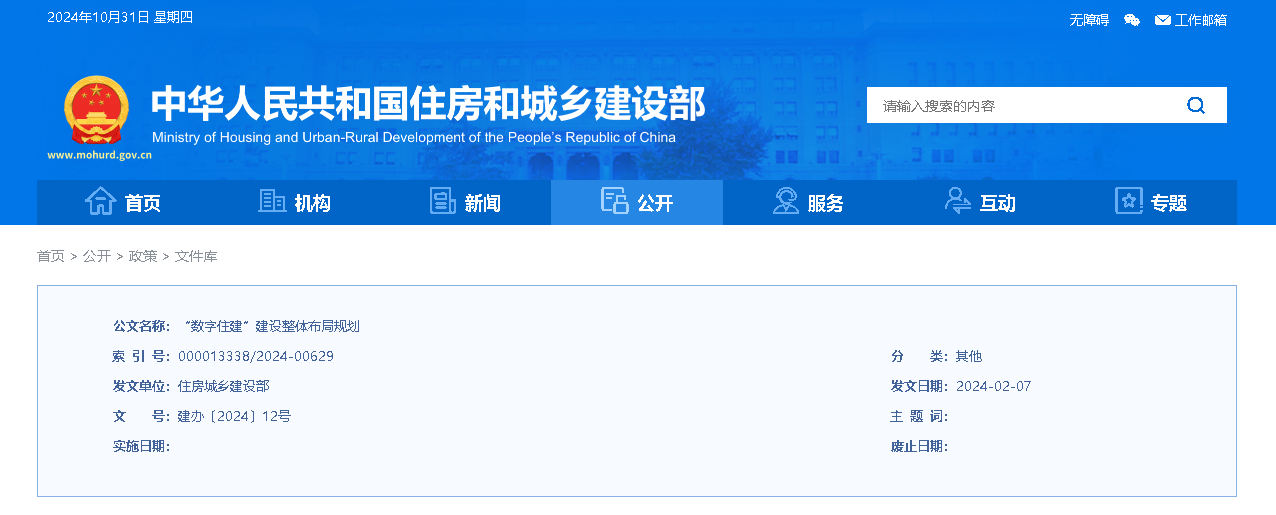 到2027年底,“数字住建”建设取得显著成效。部、省、市三级“数字住建”工作平台高效联通,一体化数字基础设施和数据资源体系建成运行,数字化政策标准和安全防护支撑能力明显提升,住房、城乡建设、建筑业等领域数字化发展成效显著,工程建设领域全生命周期数字化管理协同高效,城市运行管理基本实现“一网统管”,住房公积金等数字化服务效能大幅提升。