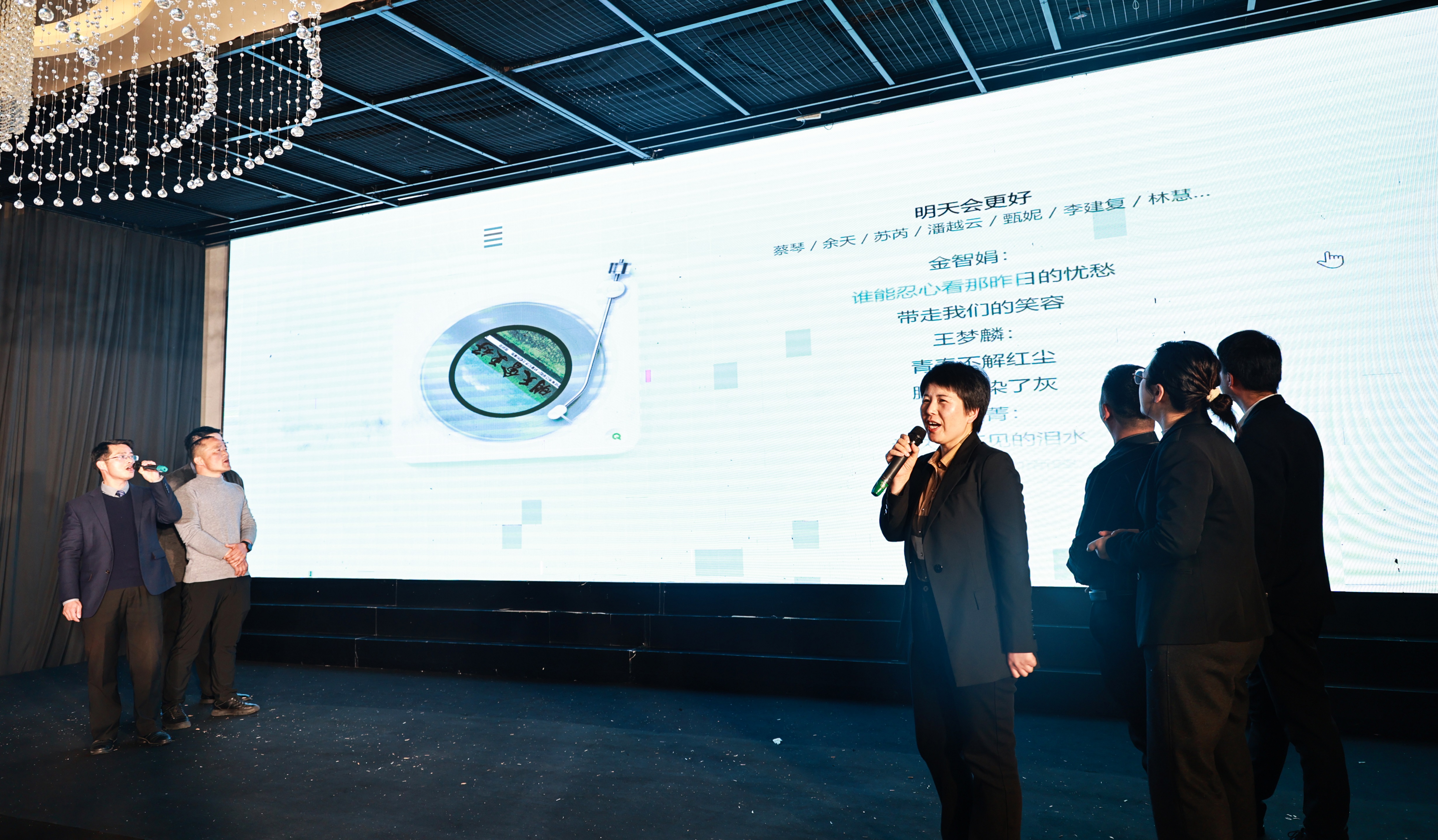 欢声辞旧岁,笑语迎新来。晚上18时,2025年新春联欢会正式拉开帷幕,香港正牌挂牌之综合挂牌三公司总经理岳玉珍致以热情洋溢的新春贺辞。首先向获得表彰的先进个人表示热烈祝贺,对大家在2024年取得的优异成绩表示衷心感谢,祝福项目团队成员和一线工作人员及家人新春快乐,阖家幸福,蛇年大吉,万事兴隆!