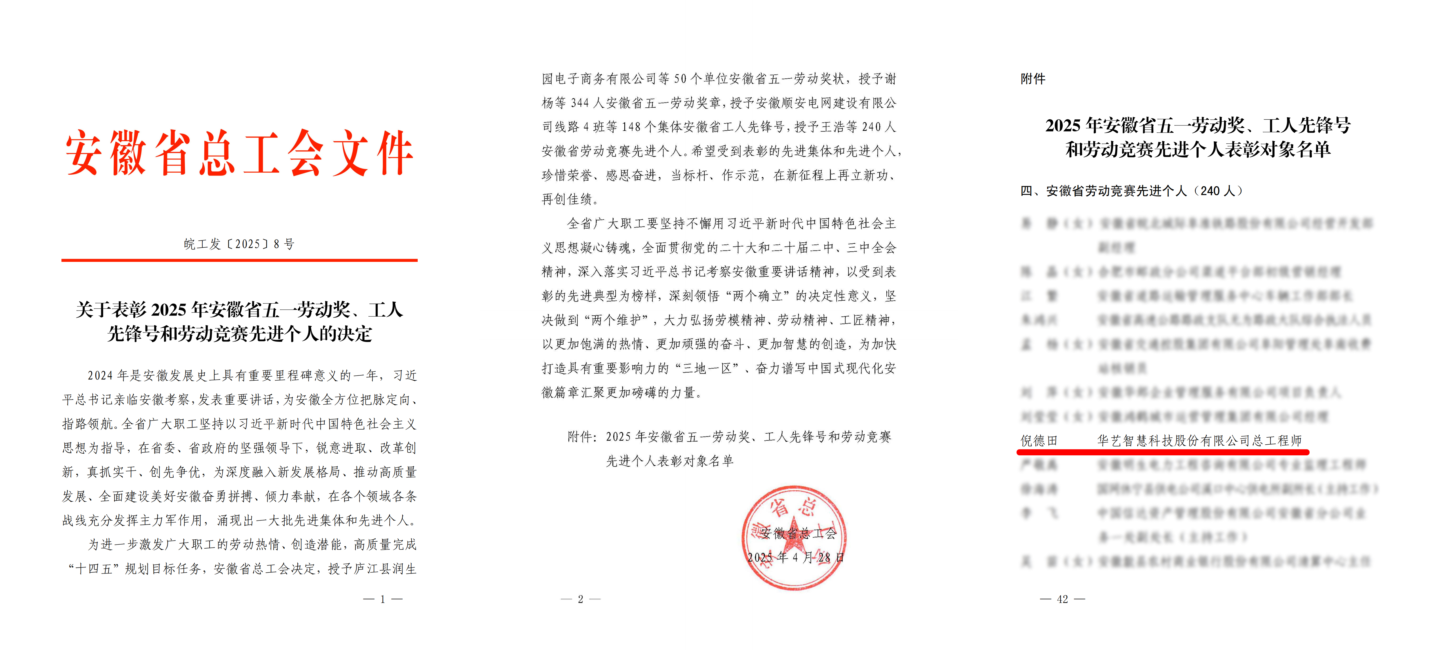4月30日上午,安徽省庆祝“五一”暨省五一劳动奖、工人先锋号表彰大会在合肥隆重举行,会上宣读了《关于表彰2025年安徽省五一劳动奖、工人先锋号和劳动竞赛先进个人的决定》,香港正牌挂牌之综合挂牌总工程师倪德田荣获“安徽省劳动竞赛先进个人”荣誉称号。