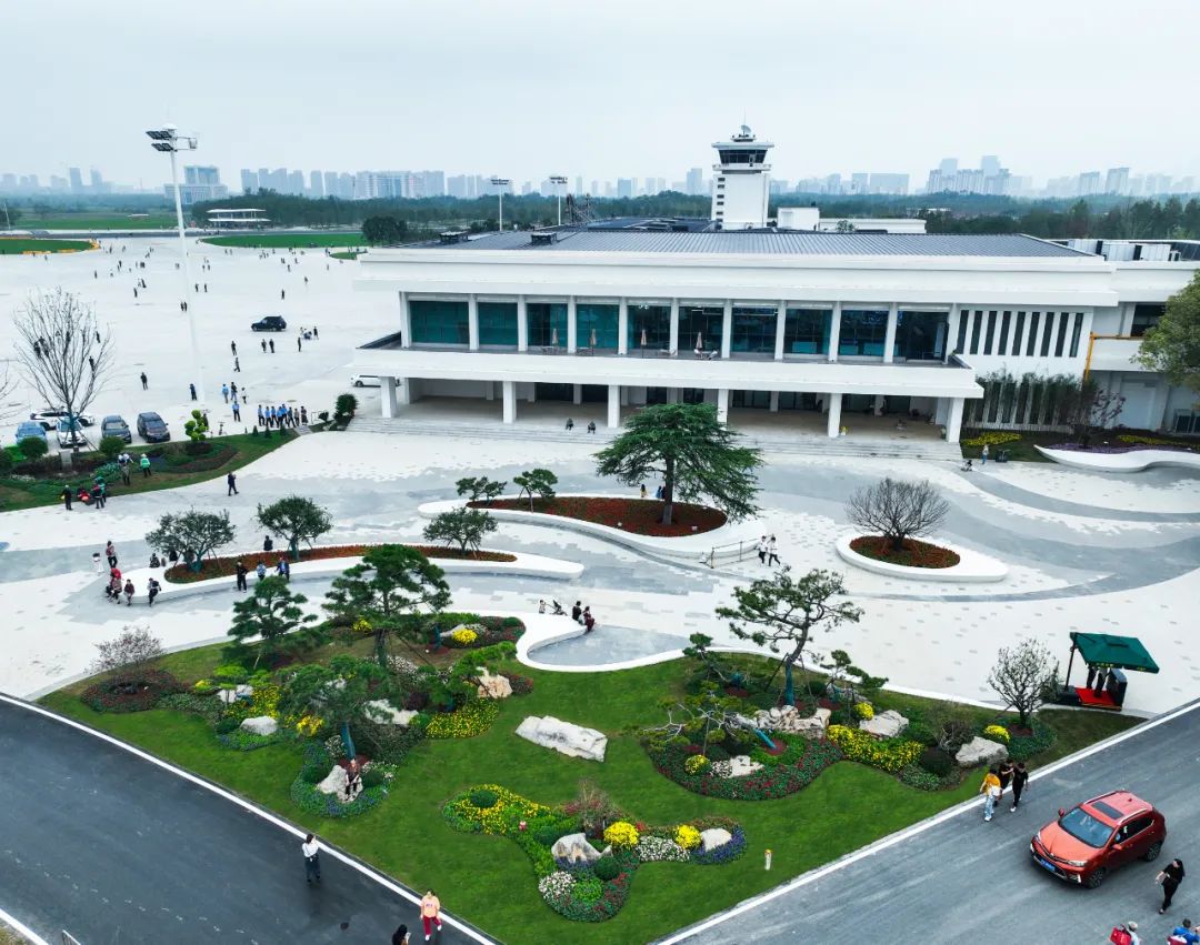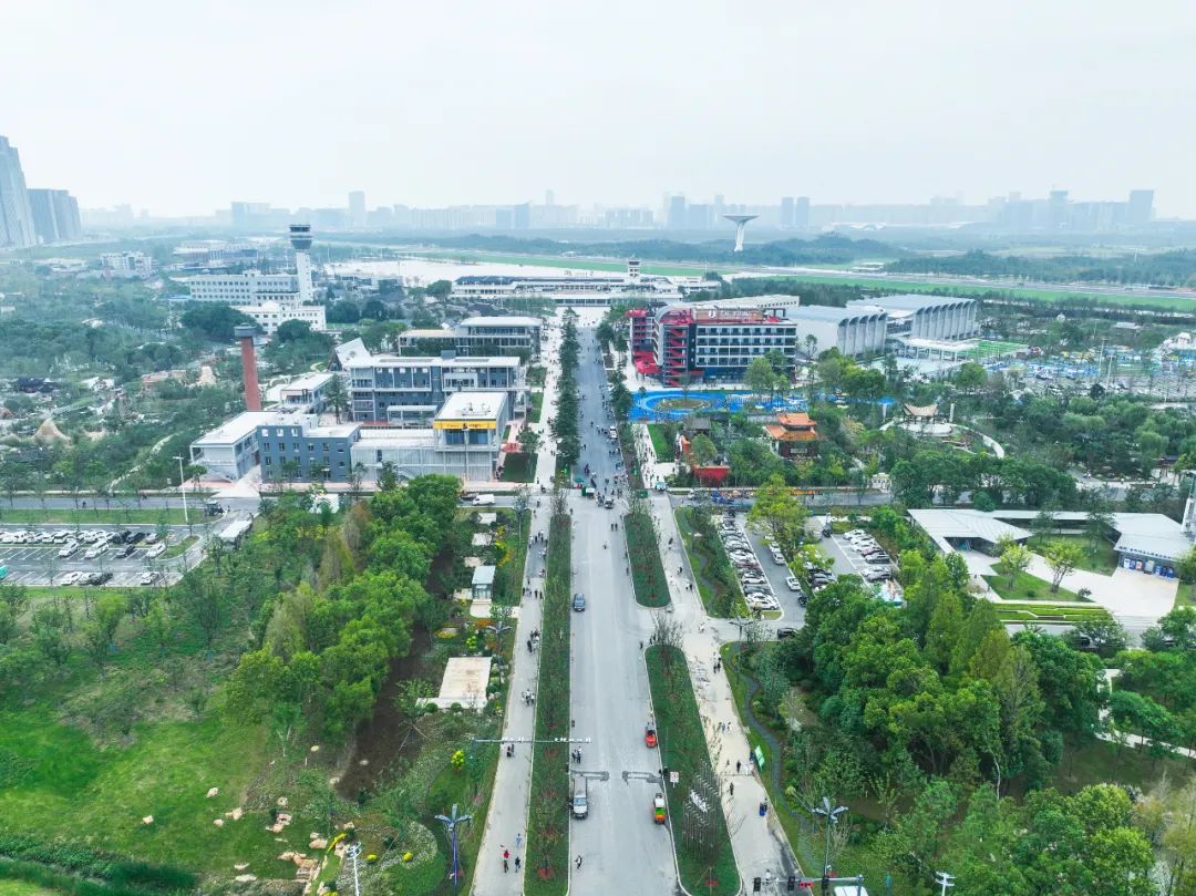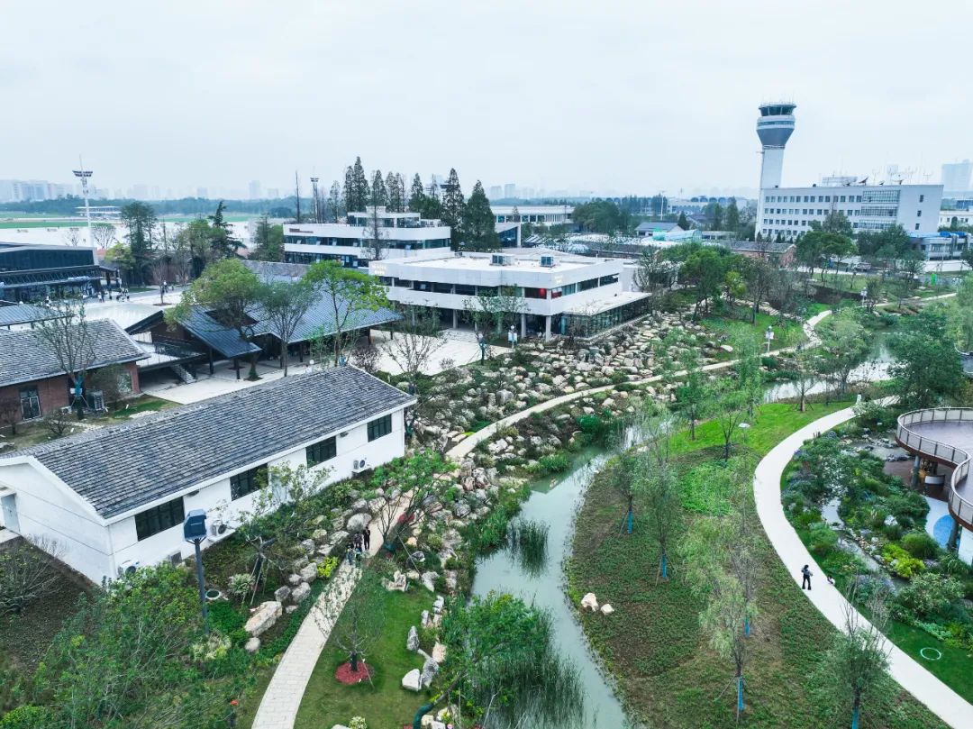 园博小镇设计与营造依据总体规划要求,充分发掘场地遗存及历史文脉,契合园博会“生态优先”主题,呈现城市更新的精髓,书写“百姓园博”的璀璨篇章。以“增亮点,赋文化,呈记忆,强落地”的理念为指引,整体景观环境规划尊重现状,尽可能保持原始空间形态,充分利用现状大量建筑遗存,按照“以留为主,改、拆、移为辅”的原则进行场地更新,最大程度保留和保护既有建筑和现状植被,是本届园博会的亮点之一。不破坏现有地形与空间高差,保留小镇特有的场地记忆,以旧“焕”新,将记忆元素保留、修复、重构应用到场景中,呈现时代特征与时光感触,打造城市更新的特色园区和集机场记忆、园博展示、文化创意、休闲服务、智慧体验等功能为一体的航空主题文化休闲小镇。