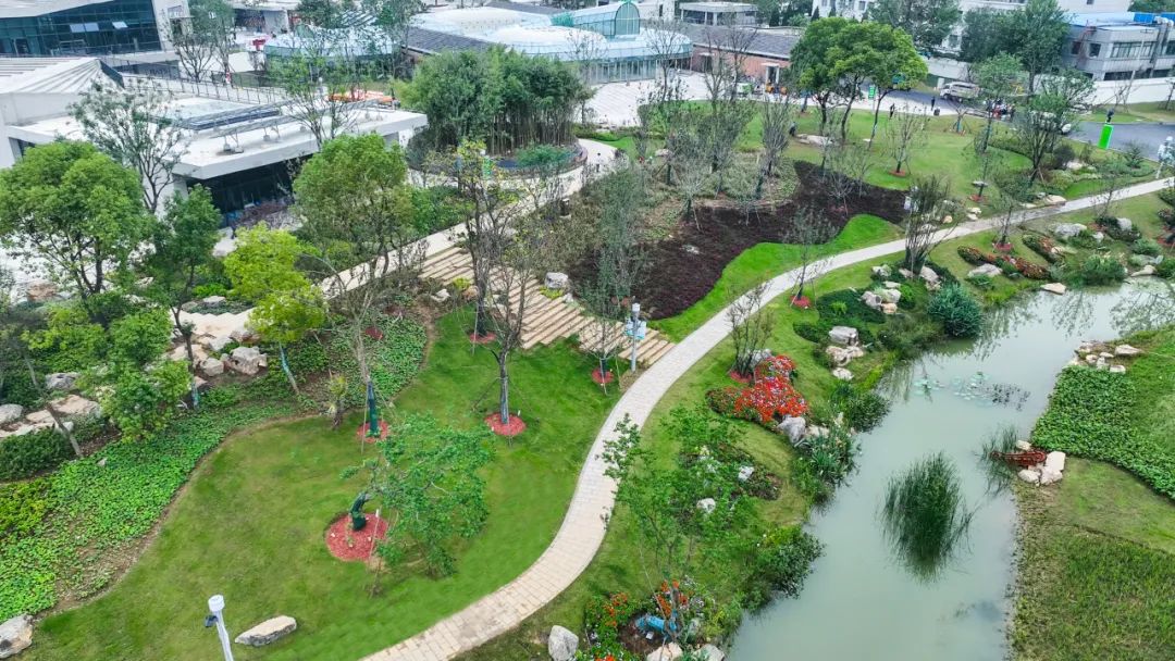 作为在园博会期内主要承担本届园博会的配套服务功能,园博会后将作为“长三角商业新地标,时尚潮玩打卡地”重点打造的园博小镇,由华艺生态园林股份有限公司参与深化设计和匠心营造,已于9月26日正式开园迎客。